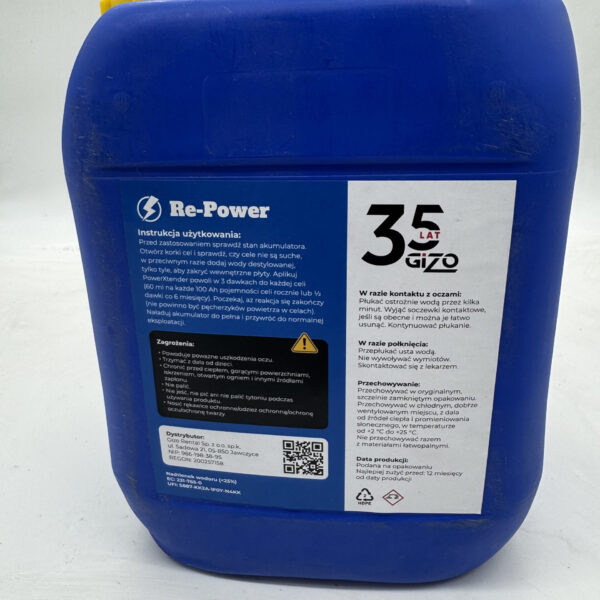 Aplikuj Re-Power powoli w 3 dawkach do każdej celi (60 ml na każde 700 Ah pojemności celi rocznie lub½ dawki co 6 miesięcy).
